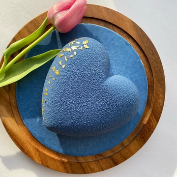 A show-stopping 3D heart cake with velvety velour finish & 24 karat gold flakes with indulgent triple chocolate layers