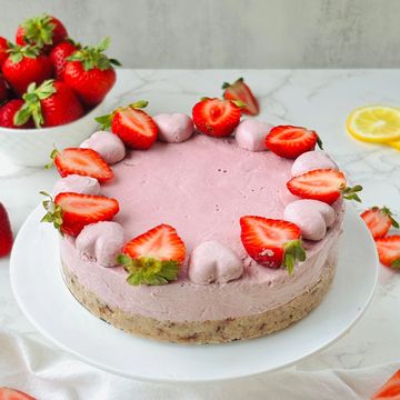 Tangy | Fruity | Strawberry cream decorated with mini hearts and fresh strawberries